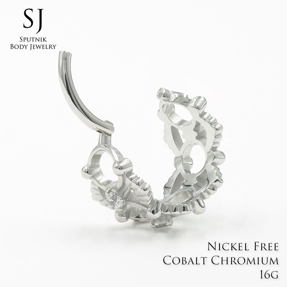 16G 11mm フローラル ボタニカル フープピアス ニッケルフリー COCR クリッカー