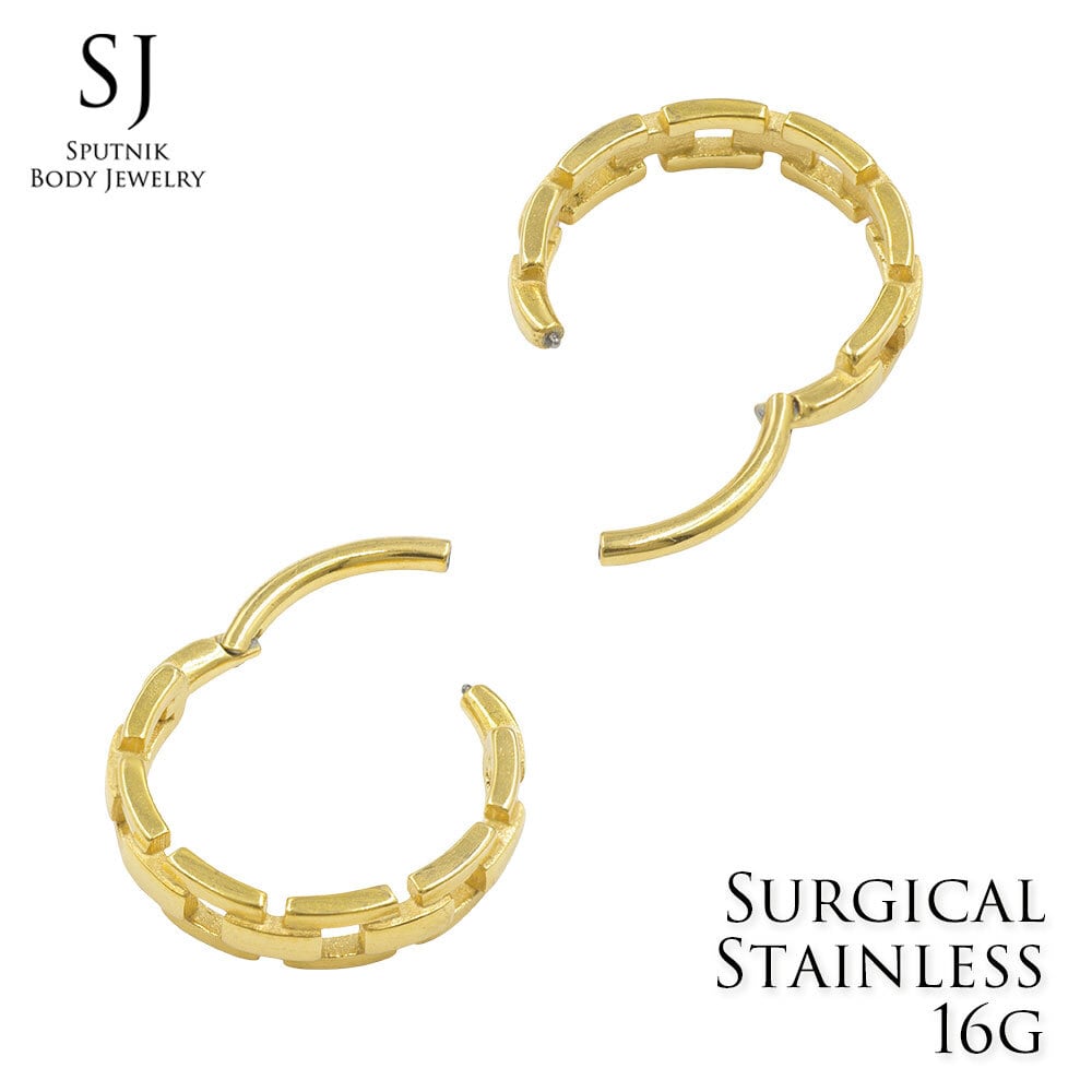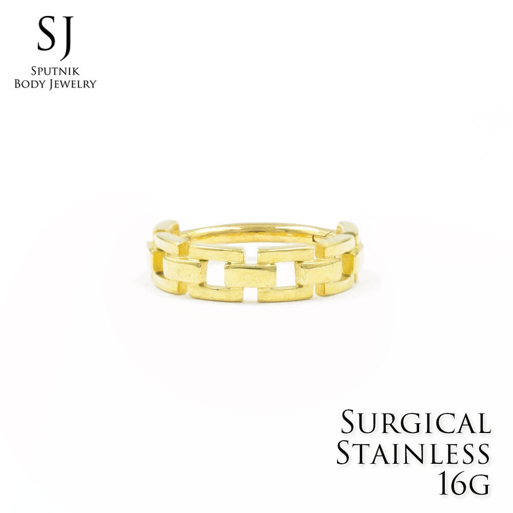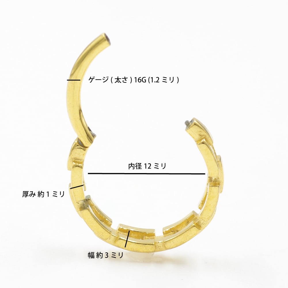 16G 12mm FUSED LINK フープピアス ゴールド サージカルステンレス クリッカー