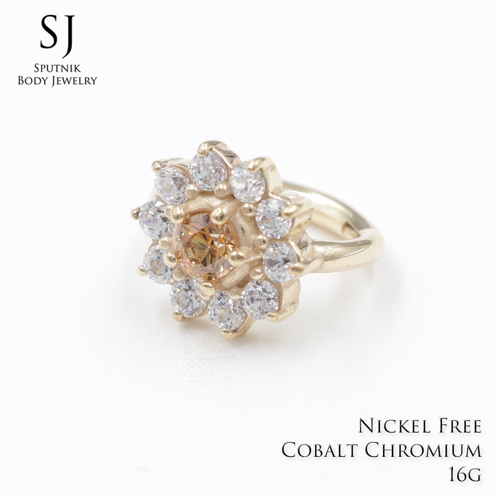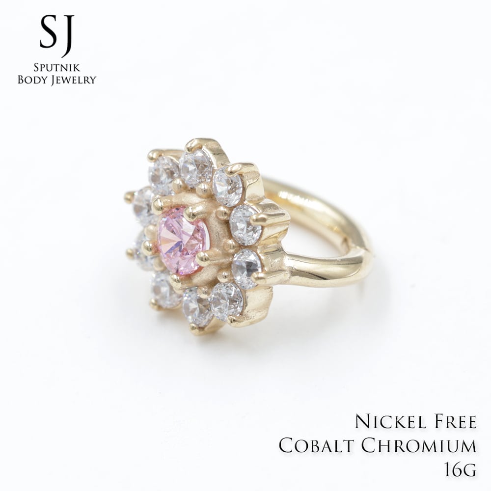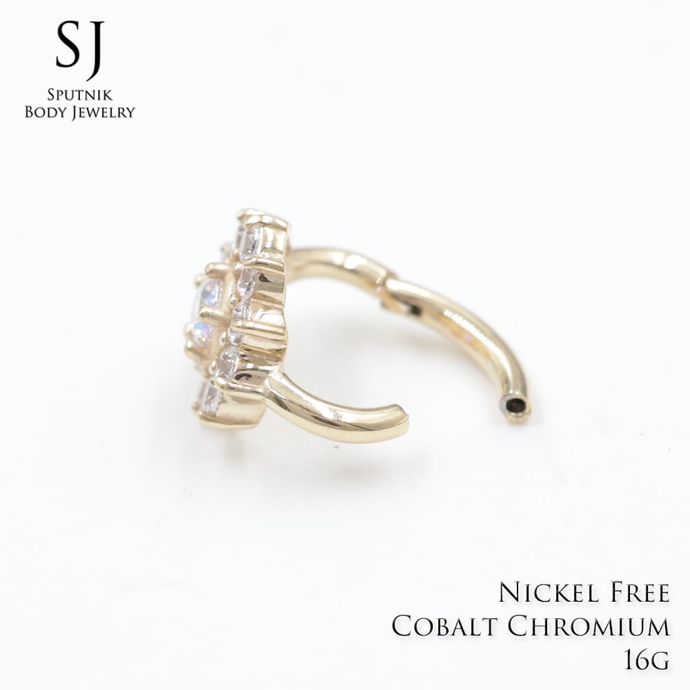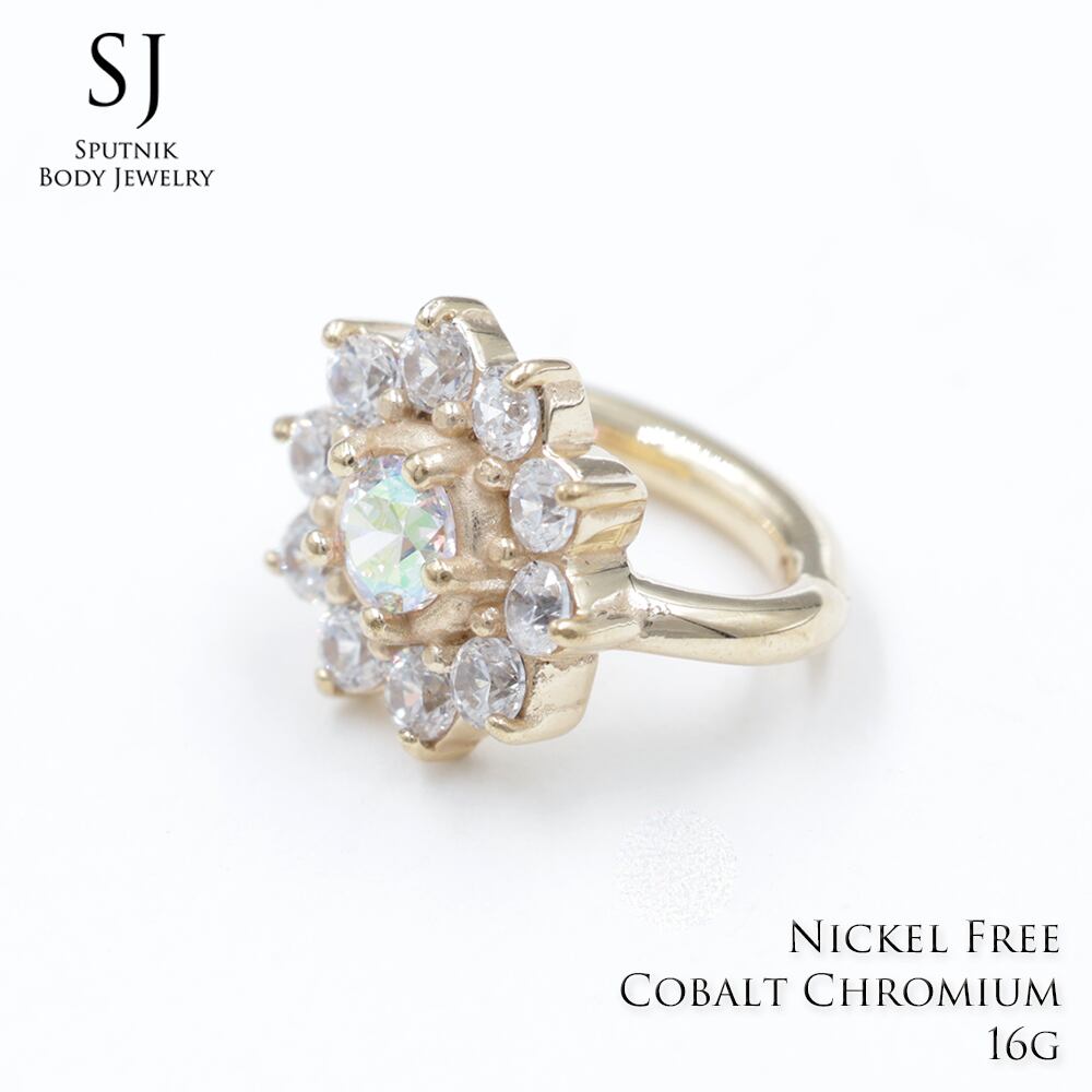 16G 7mm フラワー フープピアス ゴールド ニッケルフリー COCR クリッカー