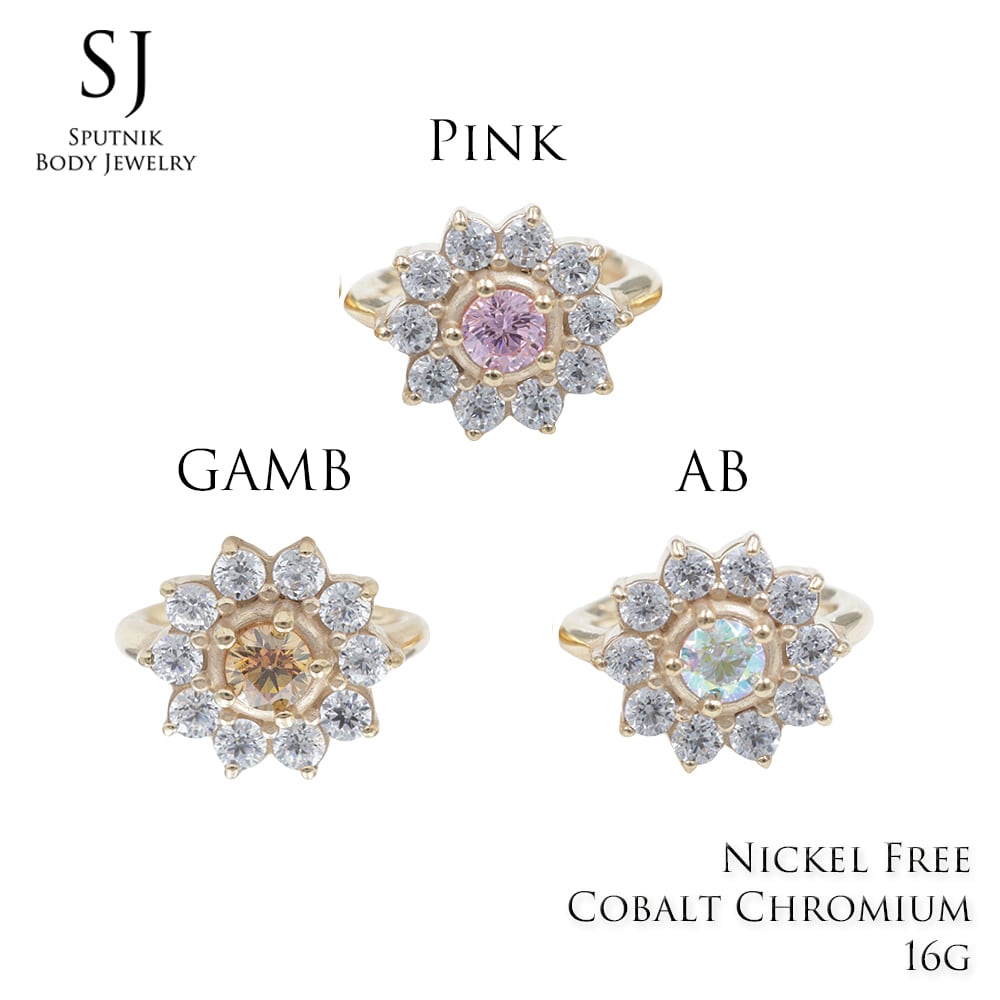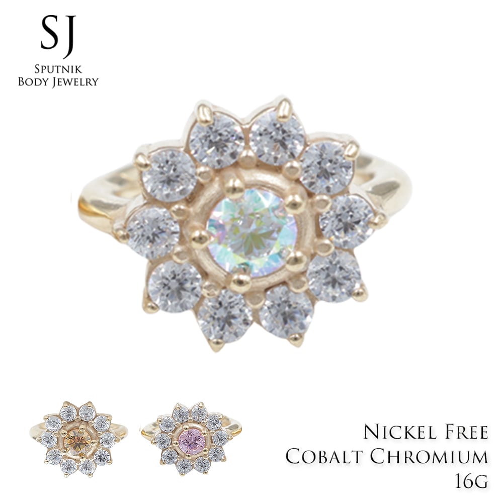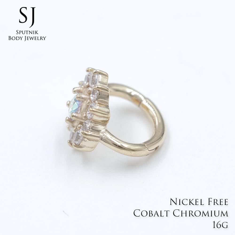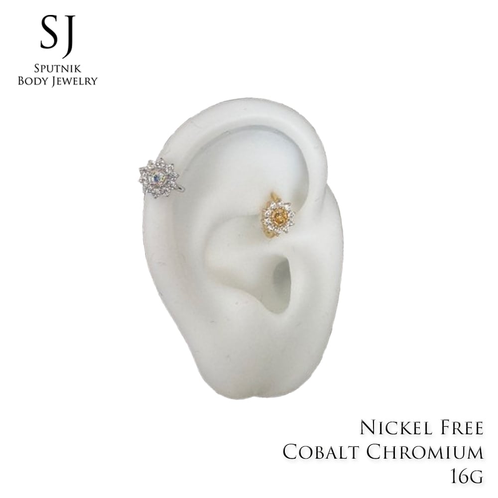 16G 7mm フラワー フープピアス ゴールド ニッケルフリー COCR クリッカー