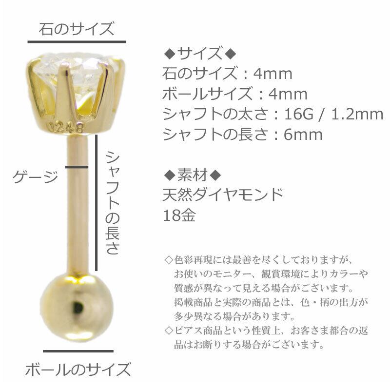 K18 16G ダイヤモンド 0.24ct 4mm バーベル ピアス
