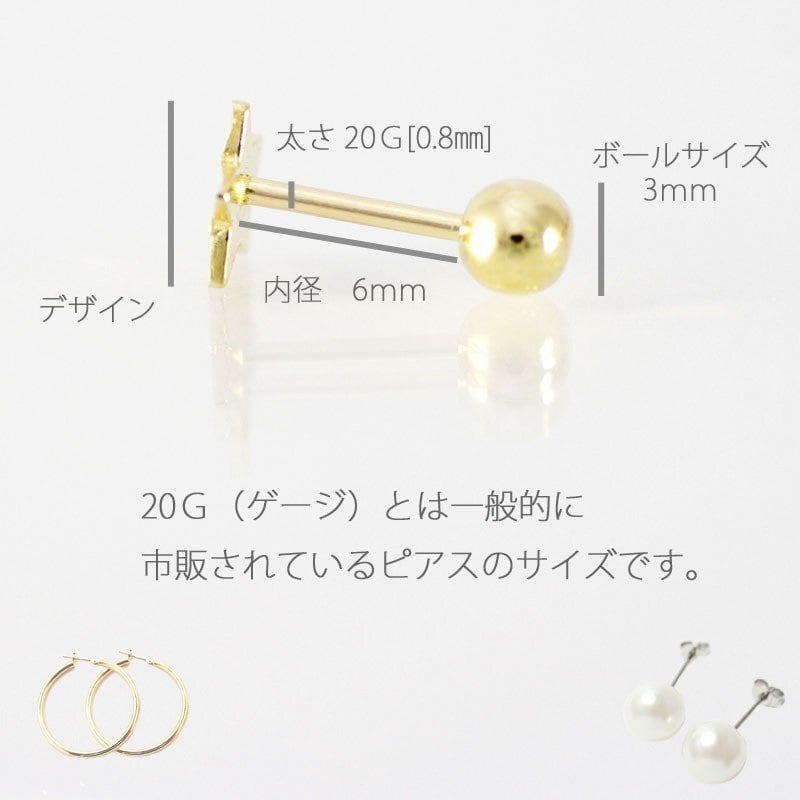 20G(ゲージ)とは一般的に市販されているピアスの太さです。