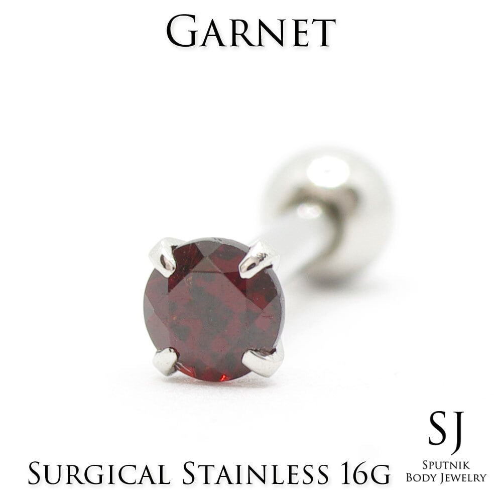 16G 20G ガーネット 3mm 天然石 バーベル サージカルステンレス316L